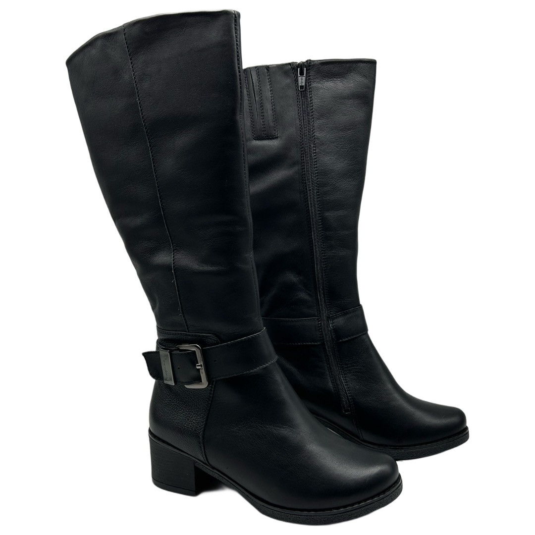 Чоботи жіночі зимові з натуральної шкіри чорного кольору на невисоких підборах "Style Shoes"